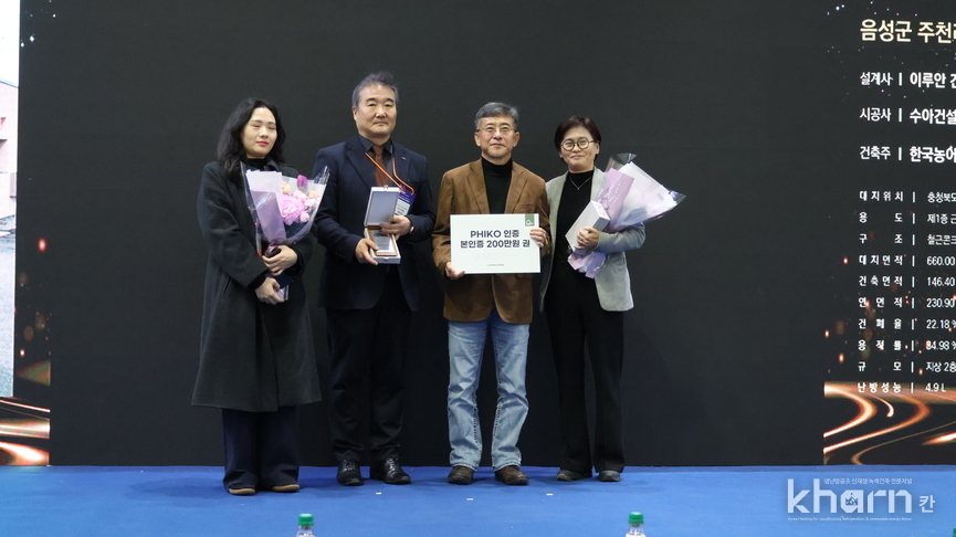 이어 PHIKO 건축상 시상식이 열렸다. PHIKO 건축상은 패시브건축 철학을 충실히 구현하고, 성능·완성도·확산 가능성 측면에서 우수성을 입증한 건축물을 대상으로 수여되는 상이다.