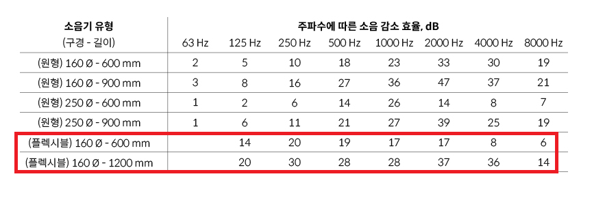 소음기를 설치할 경우 좋아지는 것은 확실하지만 플렉시블 소음기의 구경이 160파이여서 125파이로 축관하는 레듀서를 써야하기에 직결로 연결할 경우 플레시블 소음기 600mm도 시공이 어려워 보입니다. 오히려 1200mm짜리 소음기로 크게 돌려서 시공하는게 소음감소와 시공성에서 더 좋을 것 같습니다.