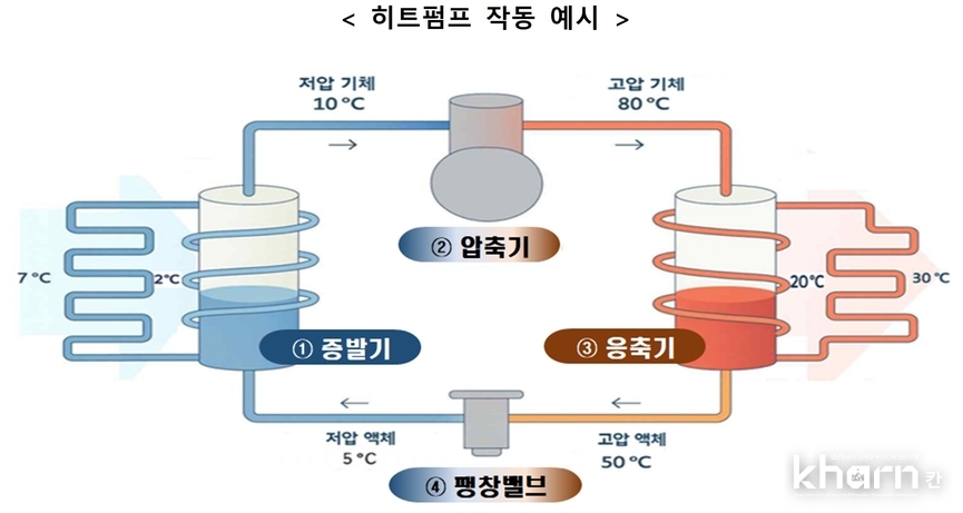 상업·공공분야는 전기식 냉방설비 설치규제 완화 및 ZEB 인증·건축물 에너지절약 설계기준에 HP 우대 및 공공건축물의 경우 1만㎡ 이상 신·증축 시 일정 비율 이상 HP 설치 의무화, 난방·급탕 소비량이 큰 목욕탕·숙박업 등 에너지다소비업종 대상 히트펌프 보조금 지원 대상 확대 등을 추진한다. 산업분야는 미활용열 활용, 산업공정에 고온·대용량 열공급이 가능한 1,000RT 대온도차 히트펌프시스템, 180℃급 고온 스팀히트펌프 개발·실증 등 히트펌프 기술개발과 업종별 실증 및 시범사업을 통해 보급을 확대한다.